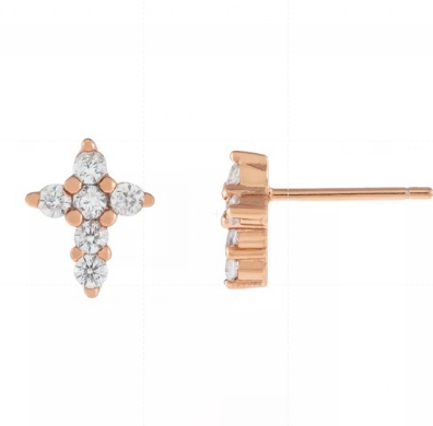18K Gold Plated Micron Pave Cross Stud Earring in 925 Sterling Silver for Girls Images |